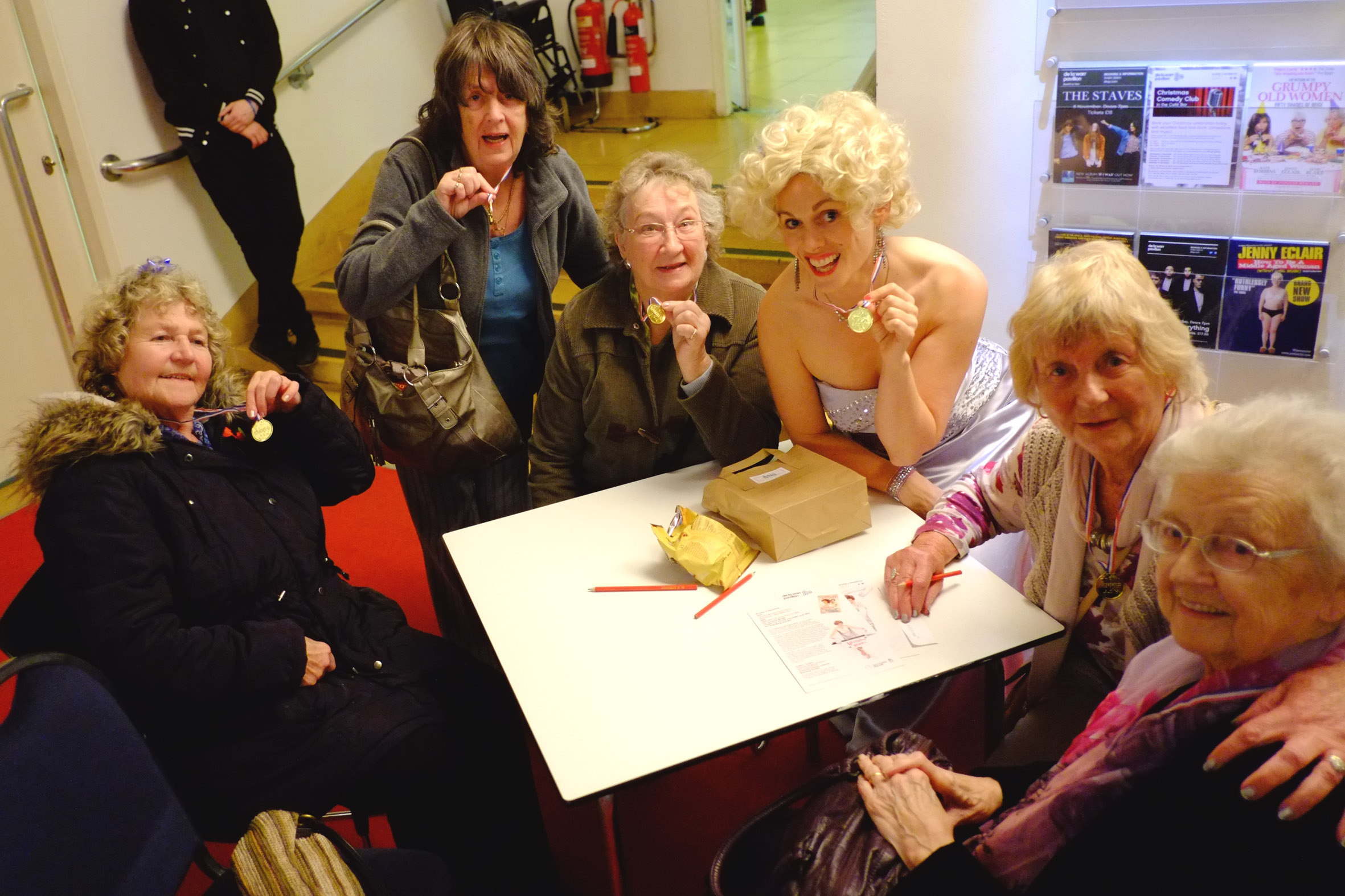 I dress up as the main character of the film, and give each audience member a goody-bag of weird and wonderful objects – things to use during the film (something to wave, wear or make a sound with). These items create a more 3-dimensional atmosphere and help us stay focused on the film, and they also give us opportunities to play and perhaps get to know each other better or reminisce.
